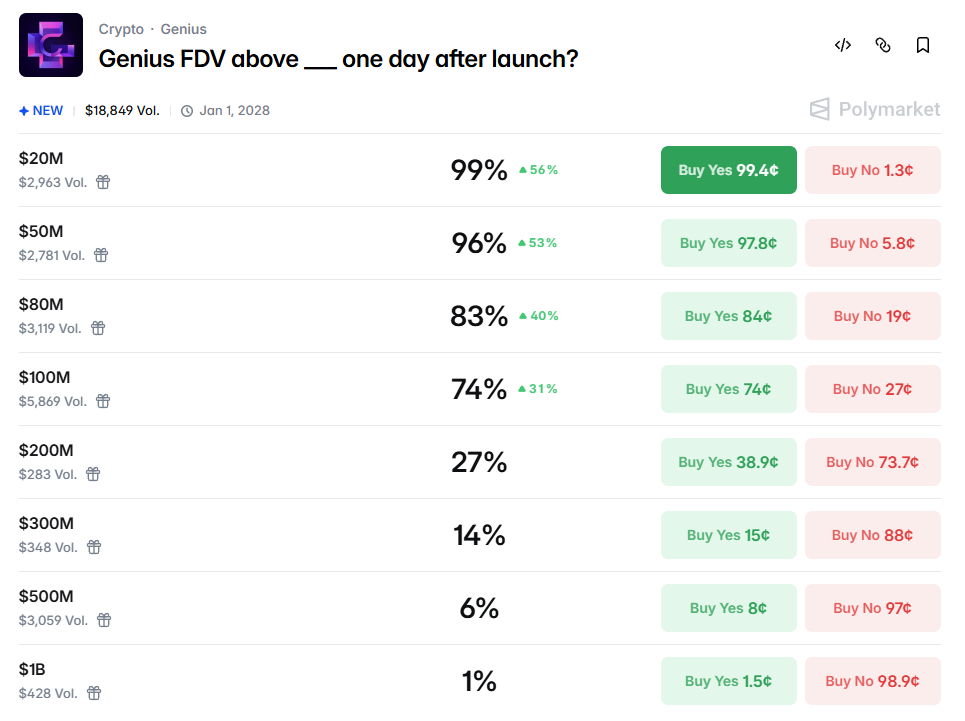 Polymarket has launched the prediction market for “Genius FDV one day after opening”