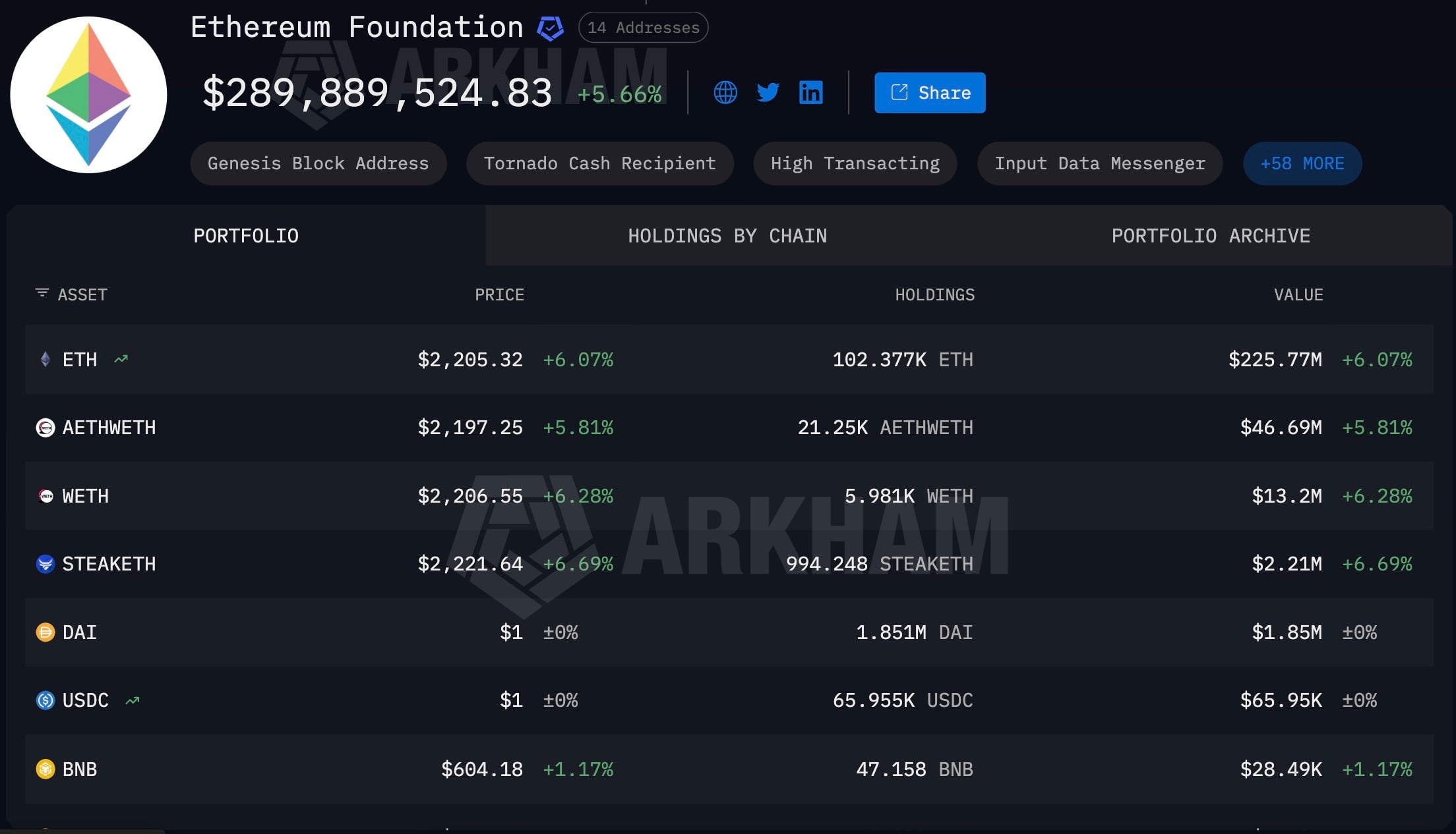 Ethereum Foundation portfolio, Source: Arkham