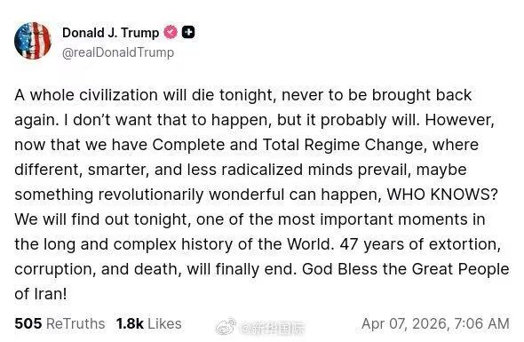 On the early morning of April 8, 2026, global financial markets held their breath. With less than an hour and a half remaining until the "deadline" set by Trump—at 8:00 PM Eastern Time on April 7—news from Trump's personal social media exploded in the market: "I agree to pause bombing and attacks on Iran for two weeks."