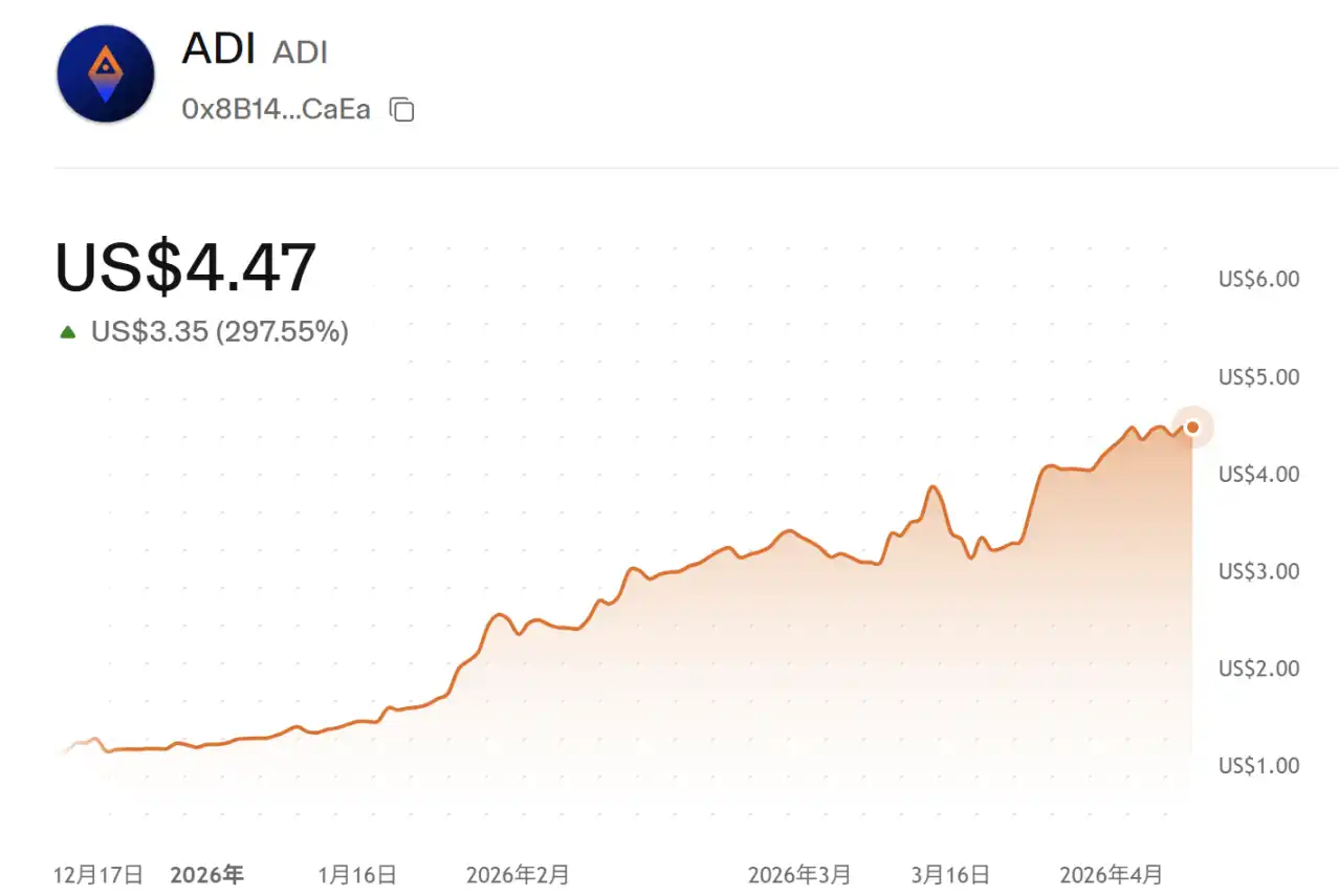 On April 2, FIFA announced a multi-year partnership with ADI Predictstreet, naming it the official prediction market partner for the FIFA World Cup 2026. Within just a few days, the native token ADI of ADI Chain, which supports the underlying technology, saw its price quickly rise from the bottom to a historic high, with a price increase of more than 4 times since the end of 2025.