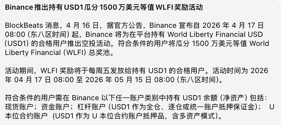 Now, no matter how chaotic the public opinion outside regarding WLFI is, USD1 wealth management is still a stable happiness! This time, it has been renewed for another month, with the financial reserves investing another 185 million WLFI, about 15 million US dollars, with an annualized rate around 8%!