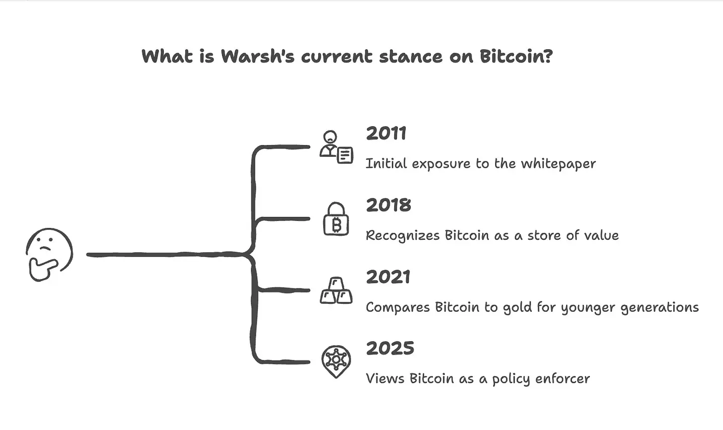 His public statements align with this. In 2011, Warsh saw the Bitcoin white paper at a dinner hosted by Marc Andreessen. In 2018, he wrote in The Wall Street Journal that Bitcoin could become a sustainable store of value like gold. In 2021, he stated on CNBC that Bitcoin is the new gold for those under 40 years old.In 2025, at the Hoover Institution, he made the most comprehensive statement to date: Bitcoin will not replace the dollar, but it could become an excellent regulator of monetary policy.I would not call Warsh a Bitcoin extremist. A monetary policy expert who views Bitcoin as a reliable signal of the dollar's health may, in some ways, be more valuable to the industry.