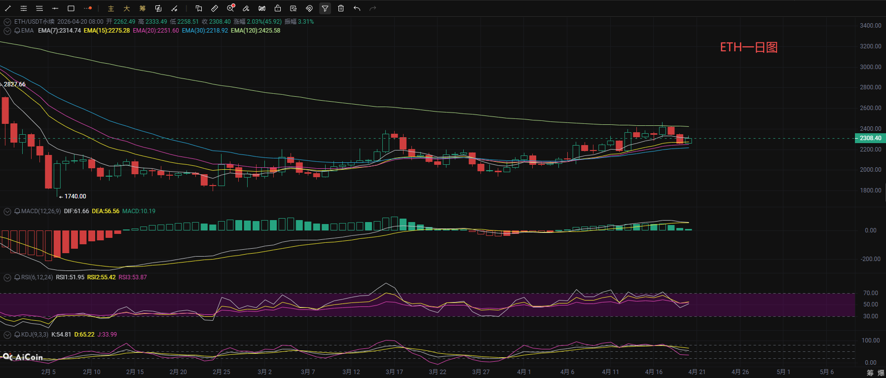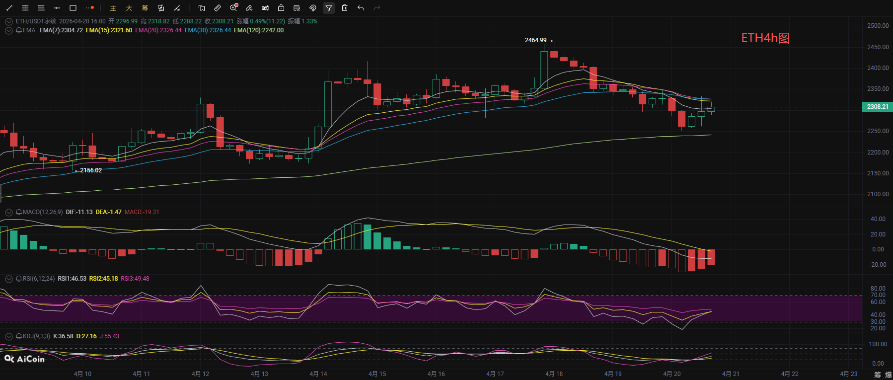 The 4-hour chart of Ethereum has entered a correction cycle, with the price fluctuating near EMA7, having broken below the short-term EMA15 and EMA20. The Bollinger Bands are converging, and the volatility range is narrowing. The MACD indicator’s DIF line has crossed below the DEA line, forming a death cross and continuously releasing bearish momentum; the RSI indicator has turned upwards from lower levels into the neutral zone, while the KDJ indicator has also turned upwards from lower levels, indicating short-term potential for a small rebound. Resistance is concentrated in the resonance area between the middle Bollinger Band at 2347 and the short-term EMA lines, while support is located near the lower Bollinger Band at around 2252. Short-term operations should treat the situation as range-bound volatility, focusing on the breakthroughs of key support and resistance levels.
