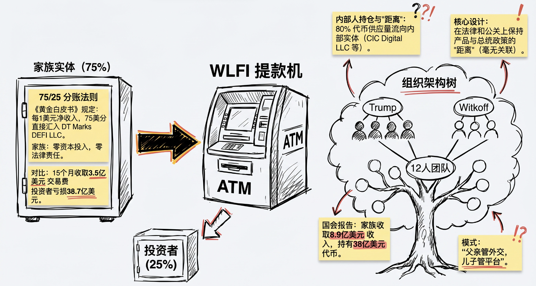 This "zero investment, high extraction, zero responsibility" structure is the core feature that distinguishes WLFI from typical cryptocurrency projects and is a main focus of congressional investigations.