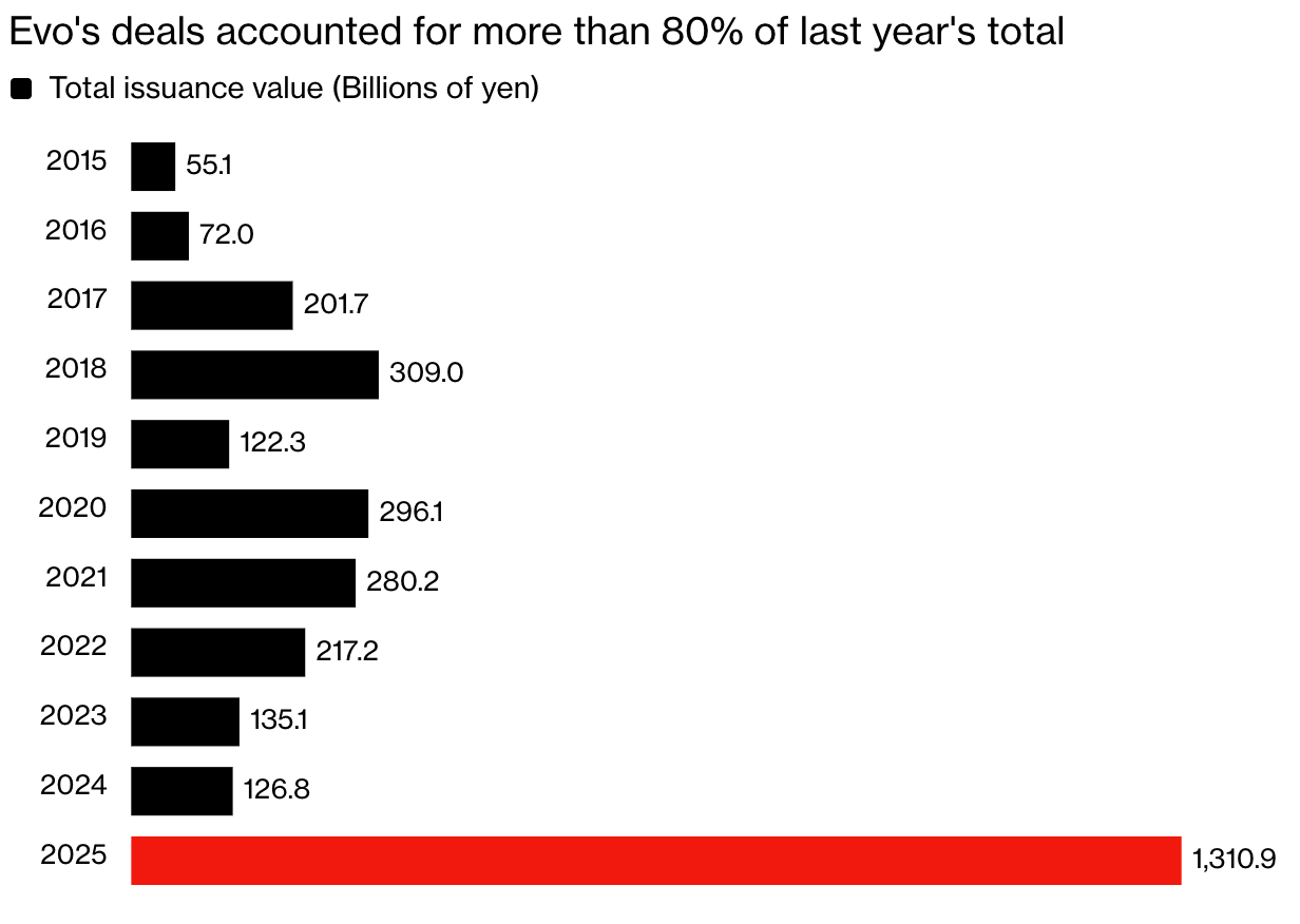 According to data from Japan's I-N Information Systems, a series of transactions between Evo and Metaplanet made 2025 the highest year for float warrant issuance in Japanese history. Last year, Lerch's fund reached a total of over 1 trillion yen (equivalent to $6.3 billion) in such financial transactions in Japan, accounting for more than 80% of the total scale across the market.