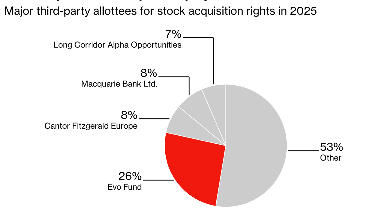 As Metaplanet continues to raise funds and accumulate Bitcoins, Evo's exercise transactions continually dilute the equity of existing shareholders, many of whom hold shares through Japan's tax-exempt financial accounts. Just during the exercise on June 24, the total equity of Metaplanet expanded by approximately 9%.