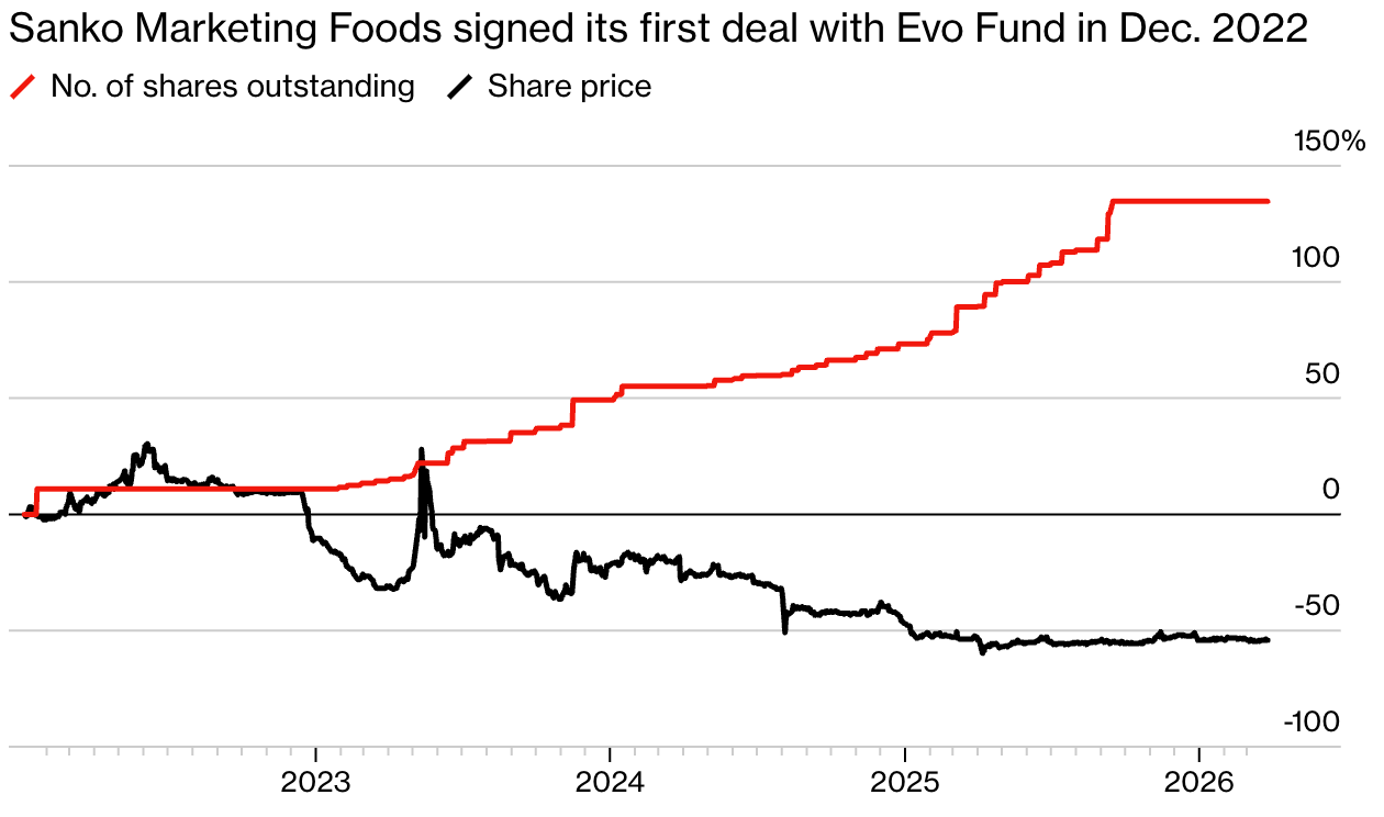 Evo's financing actions suppressed Sanko Foods' stock price