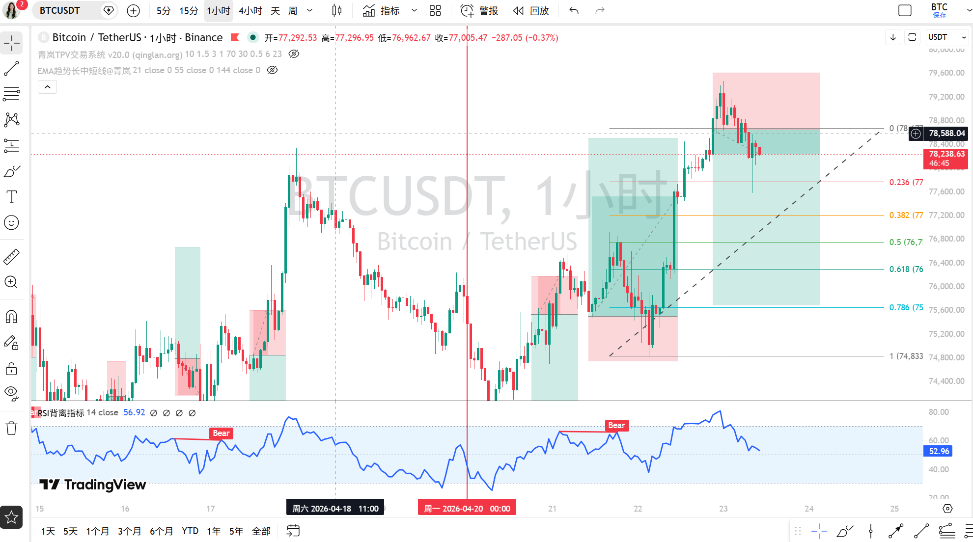 Key entry area: Pay attention to the effective low of the 1-hour cycle around 78155.83 and the support area of the upward trend line in the 4-hour cycle (approximately in the 77800-78200 range).