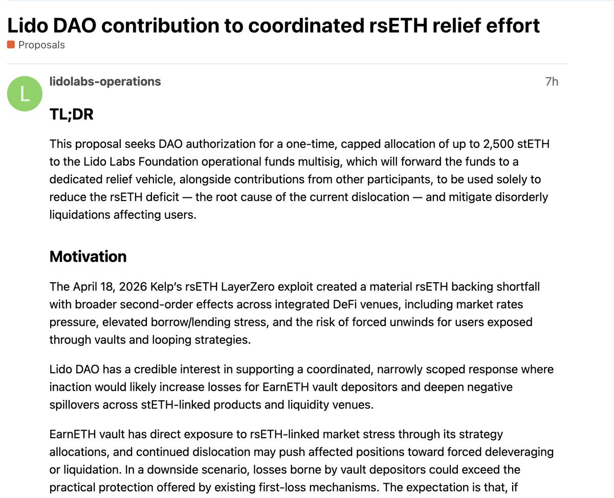 Lido(@LidoFinance) has also proposed a one-time donation of 2,500 $stETH($5.82M).