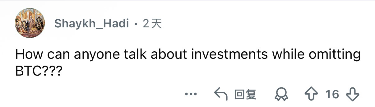 Netizens remarked: How can we talk about investment without mentioning BTC???