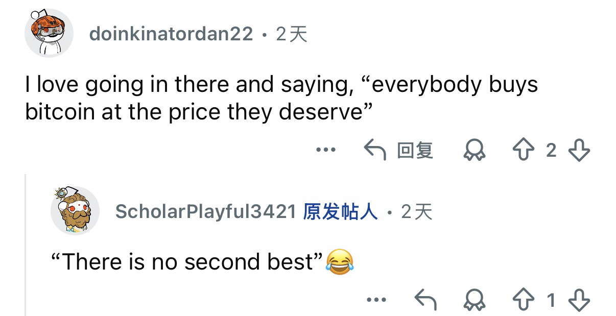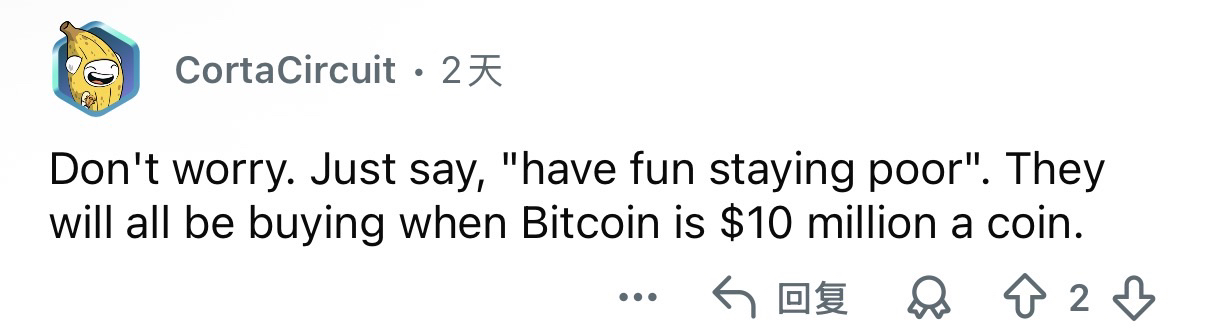 Another netizen said, I like to drop a line there: "Everyone will eventually buy Bitcoin at the price they deserve."