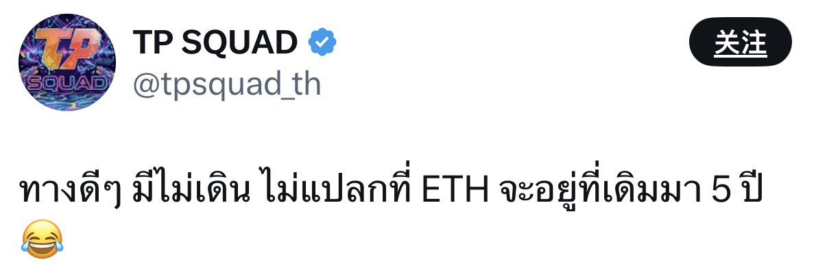 A Thai netizen's spicy commentary: It’s not surprising that ETH has been stuck in the same place for 5 years using the wrong way of walking 😂.