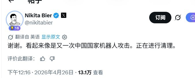 On April 26, X platform product head Nikita Bier characterized the rampant Chinese porn bots and spam on the platform as "Chinese state-level bot attacks," which caused extreme dissatisfaction among many Chinese-speaking users. Many accused him of racism and arrogance, saying he couldn't even distinguish basic facts.