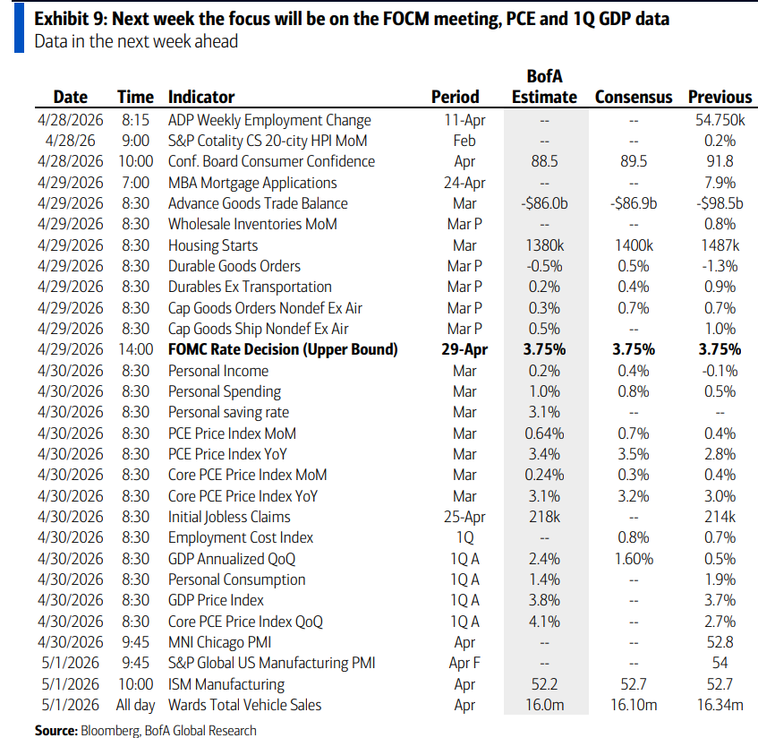 From a data perspective, analysts forecast the annualized GDP growth rate to be 2.4% for Q1 to be announced on April 30 (the market consensus is 1.6%), with core PCE expected to be 3.1% year-over-year. Inflation remains high, which is the fundamental reason for Powell's difficulty in shifting to a dovish stance.