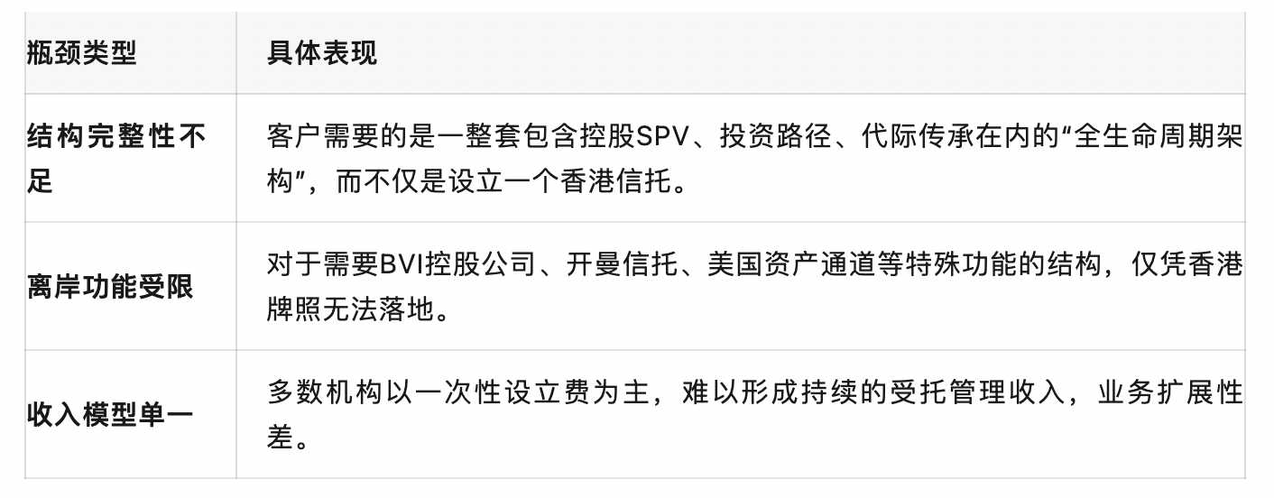 Ultimately, the Hong Kong trust license addresses the "client entry" issue, rather than the "asset structural layer" issue.