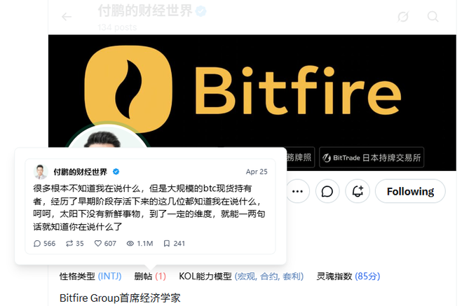 If we just look at the labels, Fu Peng seems to have made a significant leap from traditional macro researcher to Web3.