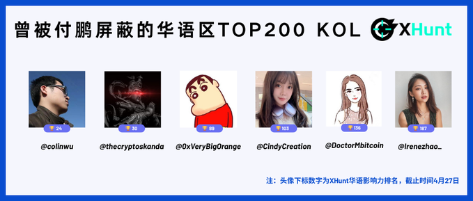 The list of those blocked includes investors, KOLs, practitioners, and skeptics, among which are many influential accounts in the Chinese-speaking area. XHunt @XHuntCN summarized the list of the top 200 KOLs in the Chinese-speaking area that were blocked by Fu Peng.