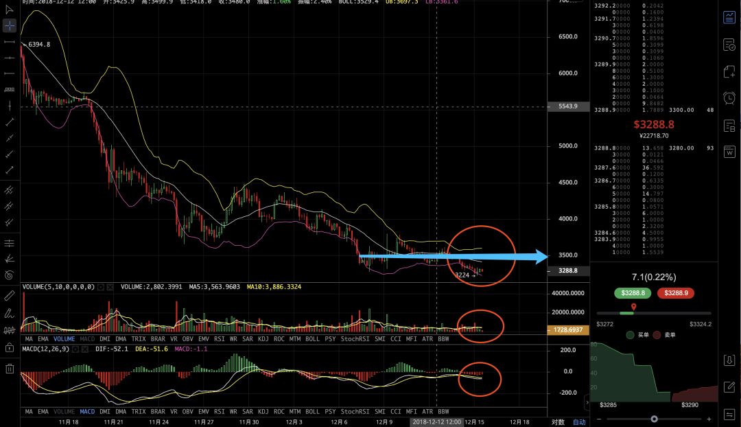 大多数人只知道或只了解币圈做多的套路,但是对主力完成牛熊周期趋势做空反弹卖现货的套路了解少之又少,当主力从6500美金跌到3200美金,主力的空头筹码都是6000美金成本位,主力在3500美金或者3700美金下方肯定是需要维持很长一段时间用来平仓上方空头筹码,同时顺便着手开始布局反弹行情和反弹至次高点进行做空筹码变现的计划,因为只有将筹码完全变现,主力才有机会在大熊市底部进行长期的横盘吸货准备。这轮下跌行情的反弹肯定是会有的,就看我们在知道主力几个套路之后,能否作出相应的抄底策略和完美的执行我们自己为自己制定的策略,不为短期的波动所影响追涨或者杀跌。