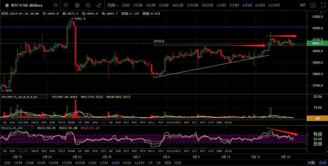 LTC/USDT现价59.4,看下4小时级别,莱特4小时有些顶背离的趋势,短线以58-59区间作为止损位,跌破就可以先观望,等这波整理消化后再入,而且昨天老铁提到了上方大概在65-75这个区间内筹码不多,可以关注,莱特走进这个区间后趋势会比较顺畅。