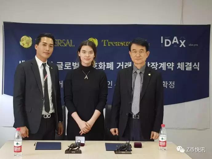 ▲环球集团TSL团队成员与全球排名第十的交易所IDAX签订上市协议