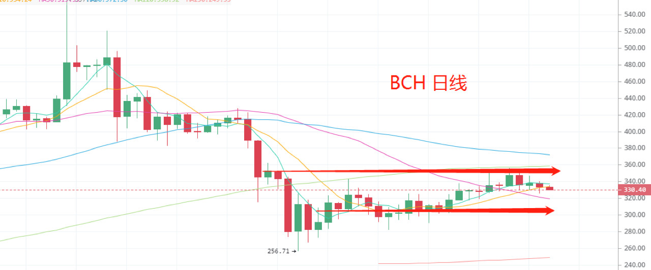 BCH:和其他主流币一样,保持震荡下行节奏,整体给人感觉很磨人,似乎没有多少资金参与,目前适合持有底仓少操作,静观其变,短期压力位340,短期支撑位325。