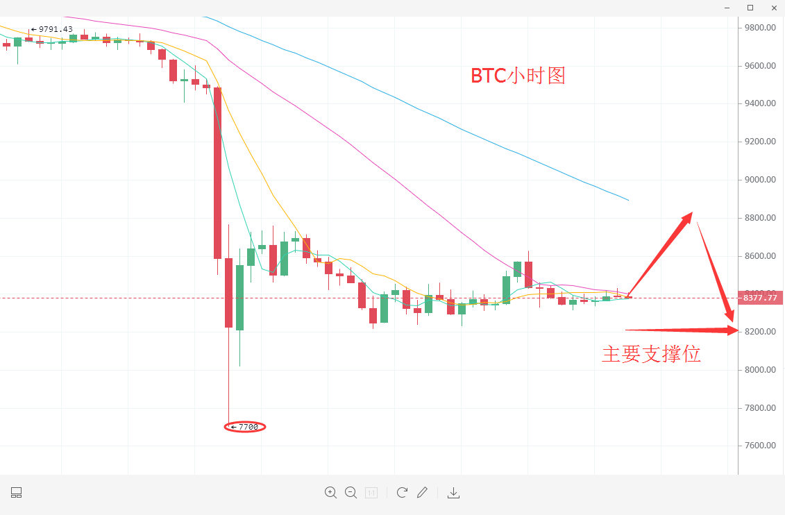 总结我昨日分析,行情维持区间震荡修复,昨天跟大家普及到关于行情一点小知识,一旦行情过于太大,技术面就需要时间来修复,昨日我给出的修复区间在8200-8800.行情也很配合一直没有跌破过8200.这个8200的支撑是我用技术指标上得知的暂时的强支撑,所以给出了这个区间。多空经历反复攻防后多方成功防守8200上方区域,企稳止跌,凌晨反弹至8624后回落,现价于8360附近小幅横盘震荡。