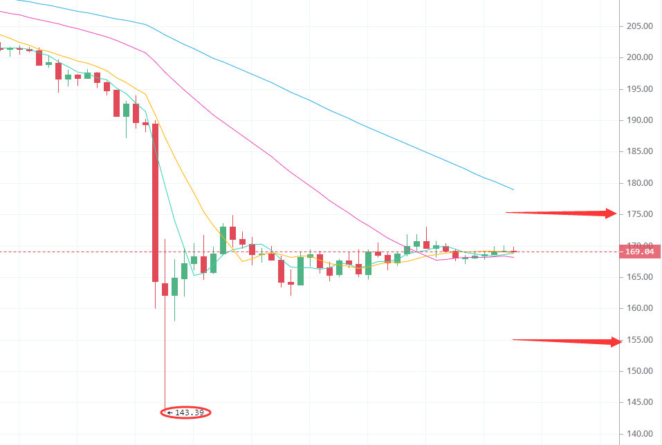 操作方面:今日压力位175,支撑位155