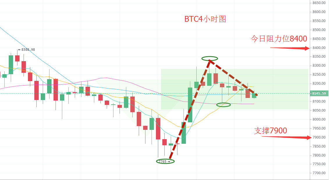 操作方面:今日压力位8400,支撑位7900,操作上还是以区间震荡为主,高空低多,可在8250-8300附近空单进场。目标看向8050,如有破位可选择继续追空。追多的朋友需量力而行,带好止盈止损。