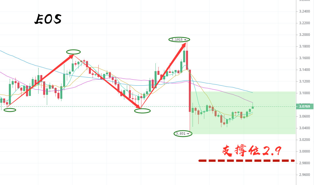BM宣布即将推出拓展方案,但是市场似乎在6月份对VOICE形成了心理阴影,大部分人根本不买账,讨论的人也非常少导致EOS逆势下探。币价上插针回落,形成M型探底走势。