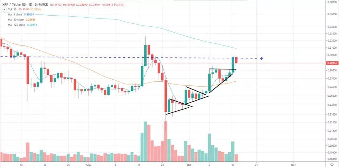 昨天我们强调XLM的走势一直以来联动XRP较多,果然在XRP继续上行下,XLM也走出一段行情,目前看并没放量,所以反弹力度并不会太大,防守点位可以放在0.06美金。