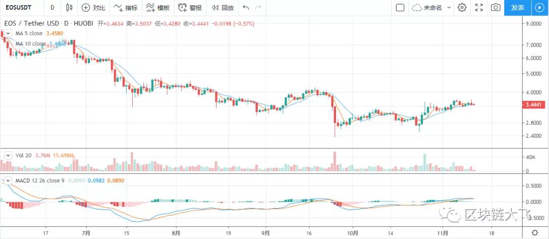 柚子走势强于大饼,但依旧受大饼影响回调,四小时线逐渐形成多头趋势,短期可能有一波反弹,长线上没有破3.0,大飞依旧认为行情还没有结束,可以低吸高抛,保证小仓在场即可。压力位:3.6,支撑位:3.35