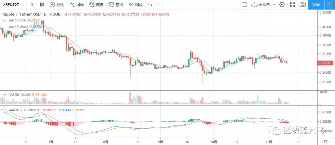 整体走势偏弱,短线空头趋势难以转变,币价受消息影响较大,操作上短期观望为主,找低点再进入。压力位:0.283,支撑位:0.265