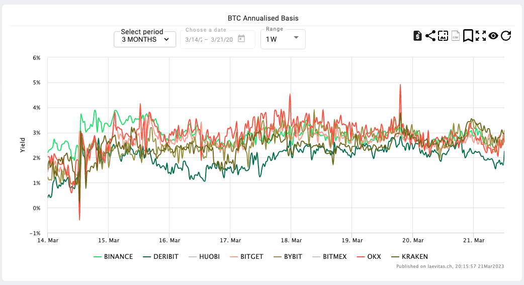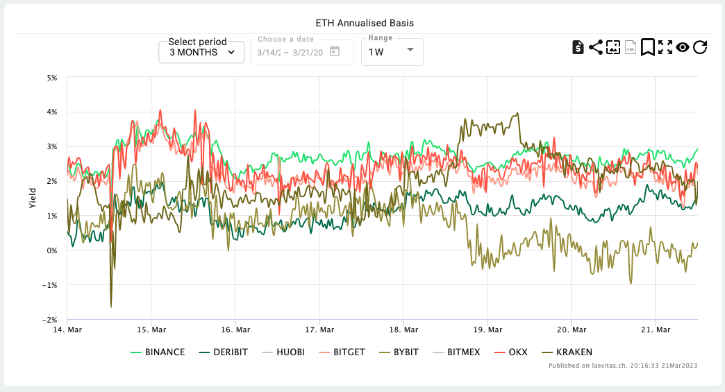 但对于 BTC、ETH 等主流加密资产而言,避险资金的涌入显著推升了其价格。BTC 的价格创下了6个月以来的新高,涨幅超40%;有趣的是,ETH 的表现则逊色很多。同时,期货市场对于本轮上涨预期反映平平,表明本轮上涨主要依靠避险情绪带来的现货买盘,而非基于良好预期下的的买入看涨行为驱动。