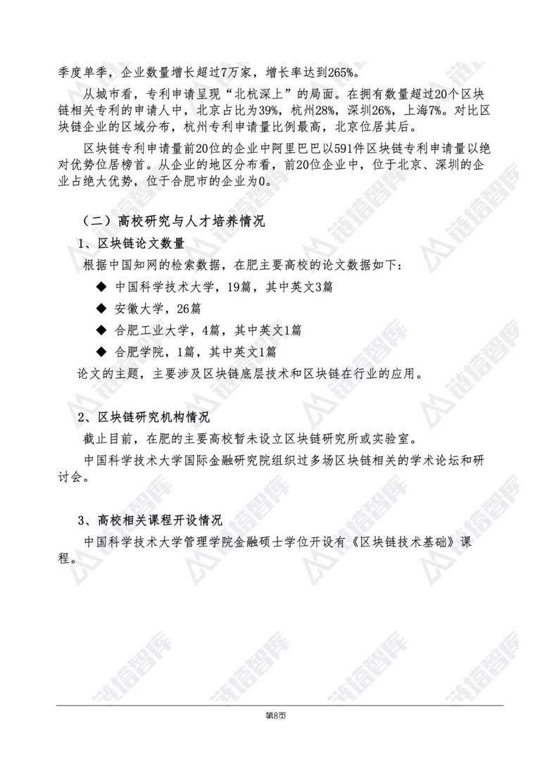 为了在全球区块链产业竞争中抓住机会,发挥合肥的技术和人才优势,营造合肥区块链发展的有序创新环境,激发企业的研发热情,加快区块链技术和应用的发展,本报告编写组,通过深入了解合肥市区块链产业现状,分析合肥市区块链产业发展情况,为产业界人士和相关公众了解产业现状提供参考,为相关部门开展产业政策决策提供信息。报告主要内容有:合肥市区块链企业的基本情况,区块链学术研究和专利数据情况,相关产业基础的分析,以及现有产业政策情况等。