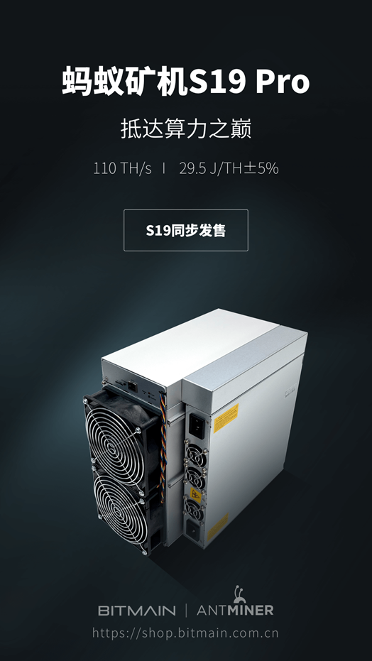比特大陆将发布两款蚂蚁矿机新品S19 Pro和S19。新品矿机支持SHA256算法,可挖比特币(BTC)、比特币现金(BCH)等加密数字货币。
