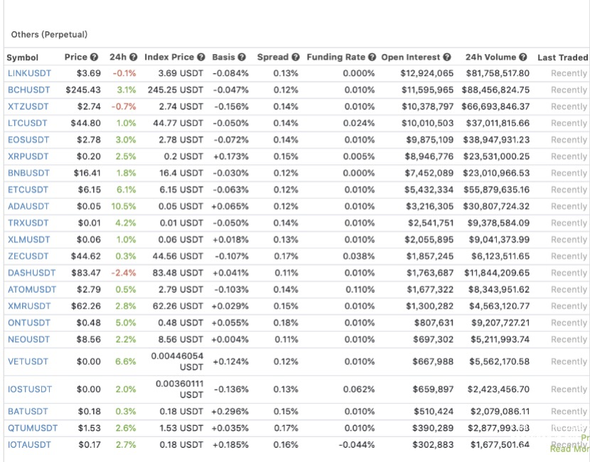 3 币安的多合约交易对:2月初开始的两周左右,币安合约平台几乎每天都上线新的交易对,截止目前为止,我们上了24个交易对,是主流交易所中上最多合约交易对的交易所。今年不但BTC并且其他小交易对都行情波动比较大,目前市场上排名前10最活跃的小交易对合约,有一半在币安平台上。