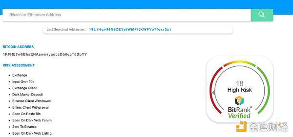 根据Bitrank的解释,他们评估比特币地址风险会涉及许多因素,包括: