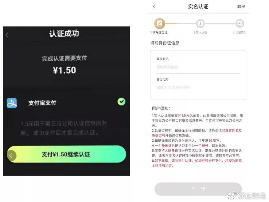 △左为秘乐,右为链淘的认证画面