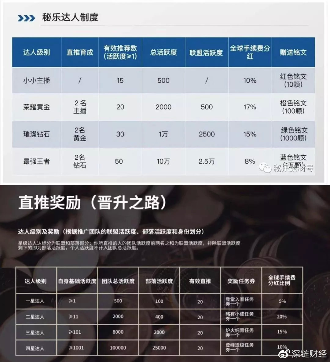 △上为秘乐达人制度,下为链淘晋升制度,高度类似