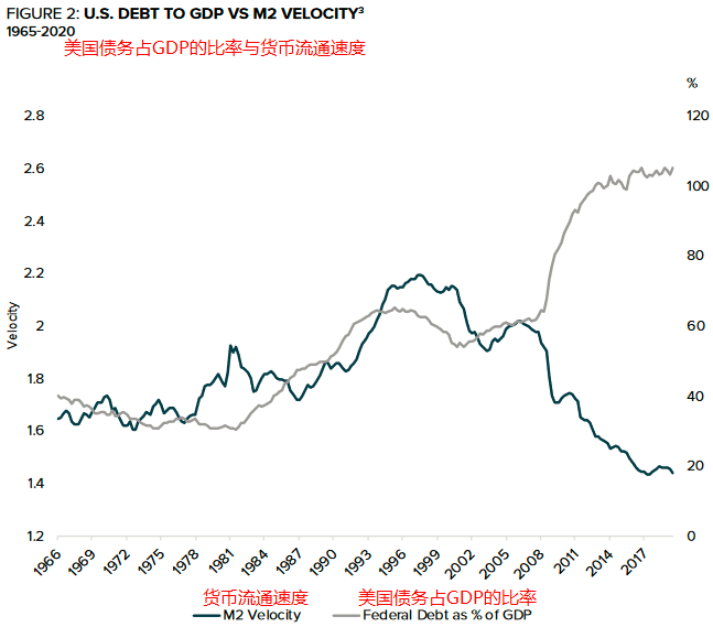 美国债务占GDP比率与货币流通速度