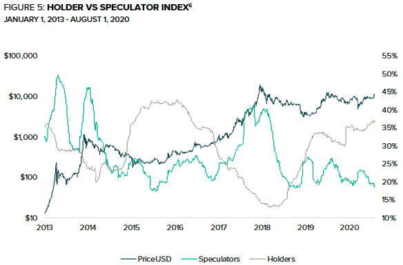 图5中显示,市场上比特币投机分子数量正在减少,信仰者数量在不断增加,这与2016年初走势类似。