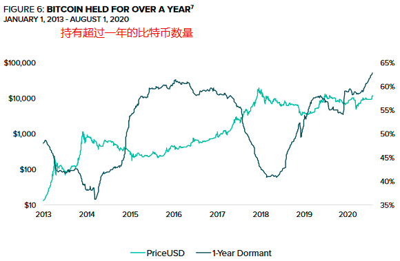 同样值得关注的是,比特币链上数据显示持有超过一年的比特币数量创历史新高。这说明,当前投资者看好比特币未来走势。虽然这是衡量比特币供应情况的指标,但这表明市场对对比特币价值储存手段的需求——尽管比特币波动性很大,但投资者们似乎对持有比特币更感兴趣,而不是交易。