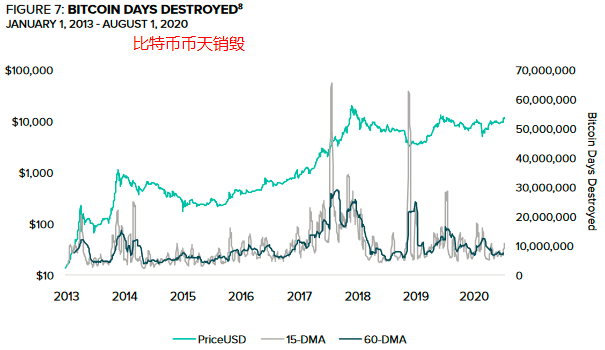 例如,如果John送给Grace一个比特币,而Grace持有该币10天之后才使用它,那么她已经销毁了10天比特币。币天销毁指数允许分析师识别旧币供应的巨大变化。