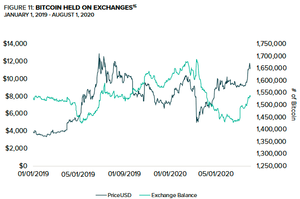 今年7月,交易所余额接近2019年5月以来的最低水平,价格随之飙升。最近,交易所比特币数量有所增加,表明投资者可能正在考虑卖出。
