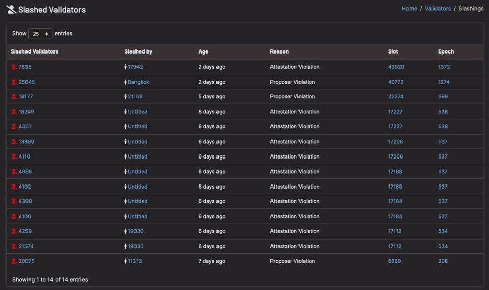 同理,如果大量验证者同时触发罚没,对于信标链来说会这无异于攻击行为,因此这些验证者 100% 的质押金会被销毁。