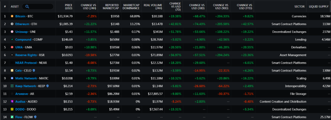 DEX原生通证:UNI、SUSHI、CRV、BNT、BAL等DeFi去中心化交易所原生通证。以UNI为代表的DEX,将伴随新版本的升级以及进一步挖掘DeFi金融工具。可以从中选择一个或多个作为资产配置的品种。