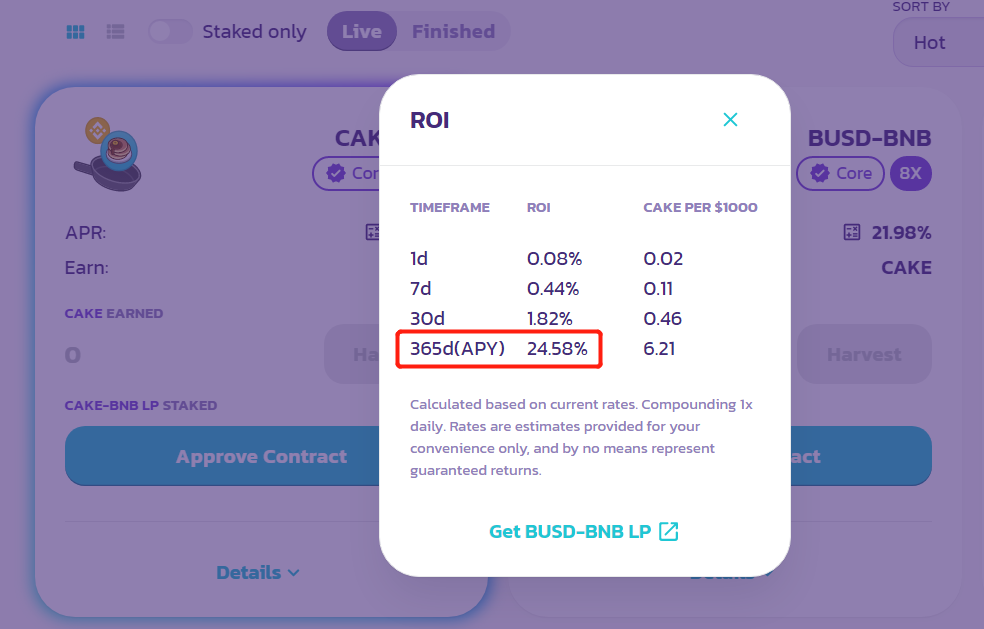 实际上,pancakebunny给出的APY分别是17.11%和18.56%,与我们计算的几乎没有区别。