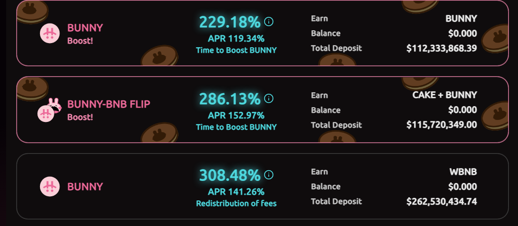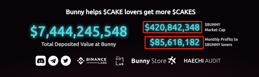 PancakeBunny是整个DeFi领域最大的机枪池,锁仓资金约74亿美元。按照当前行情,每月可以为用户贡献8500多万美元的利润。