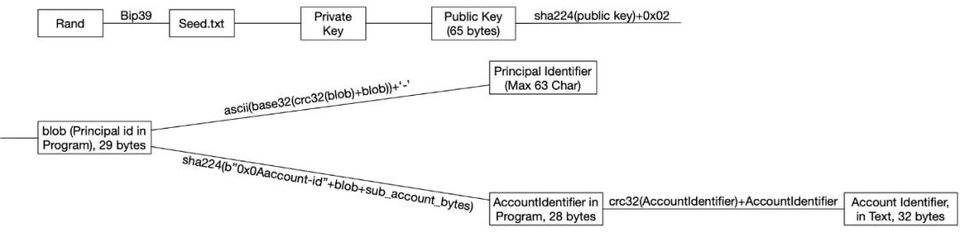 此时,对 blob 的两种处理方式分别产出了用于 II 合约的 63 字节的「Principal ID」,和 32 字节的钱包账户「Account ID」。