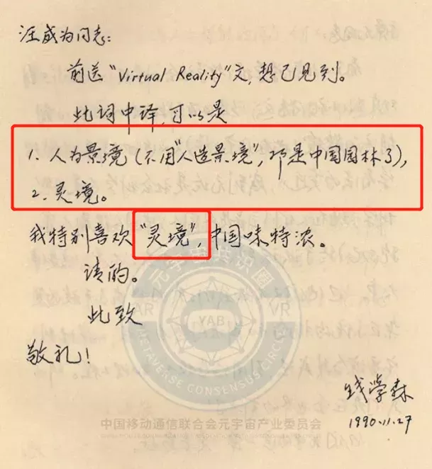 最近一条微博引发网友热议:在公布的钱学森于1990年11月27日写给汪成为院士的信中,钱学森写到“Virtual Reality”一词中译可以是“人为景境”,也可以是“灵境”。